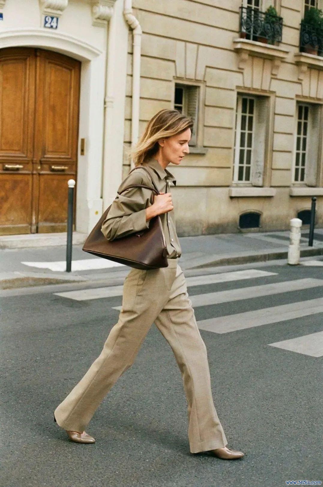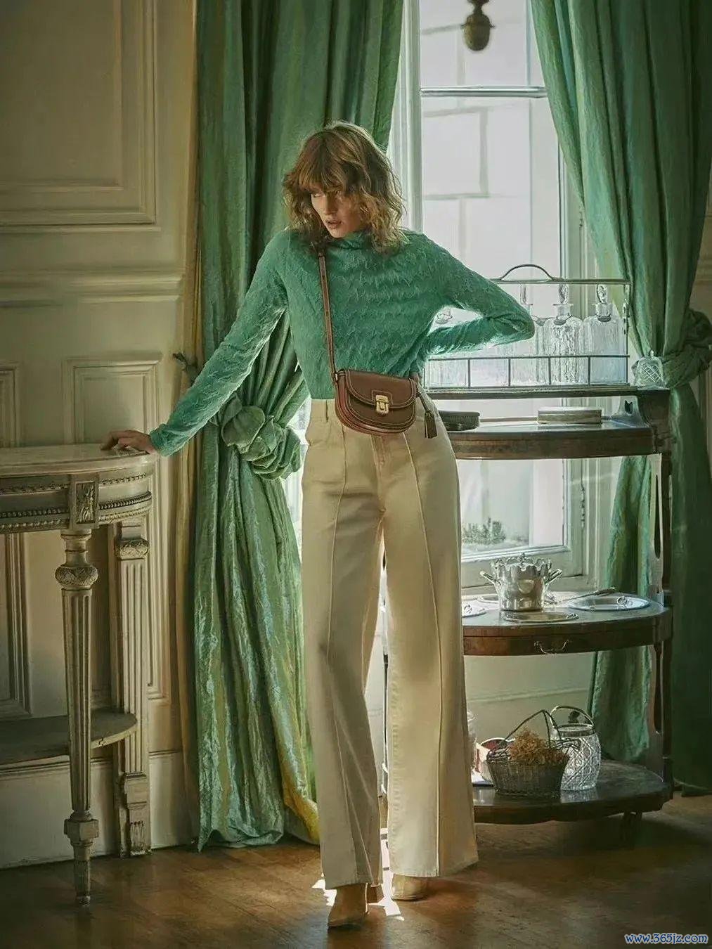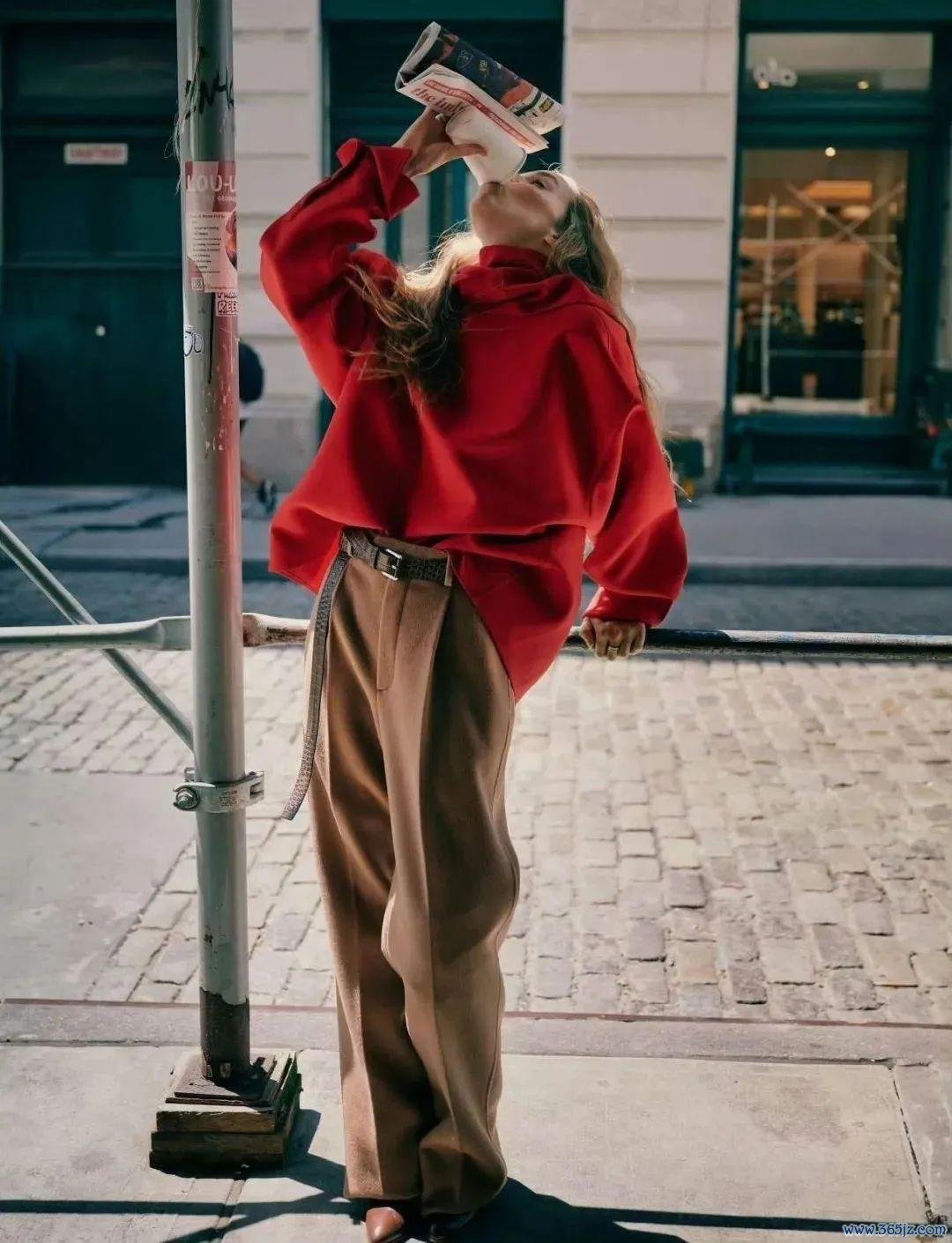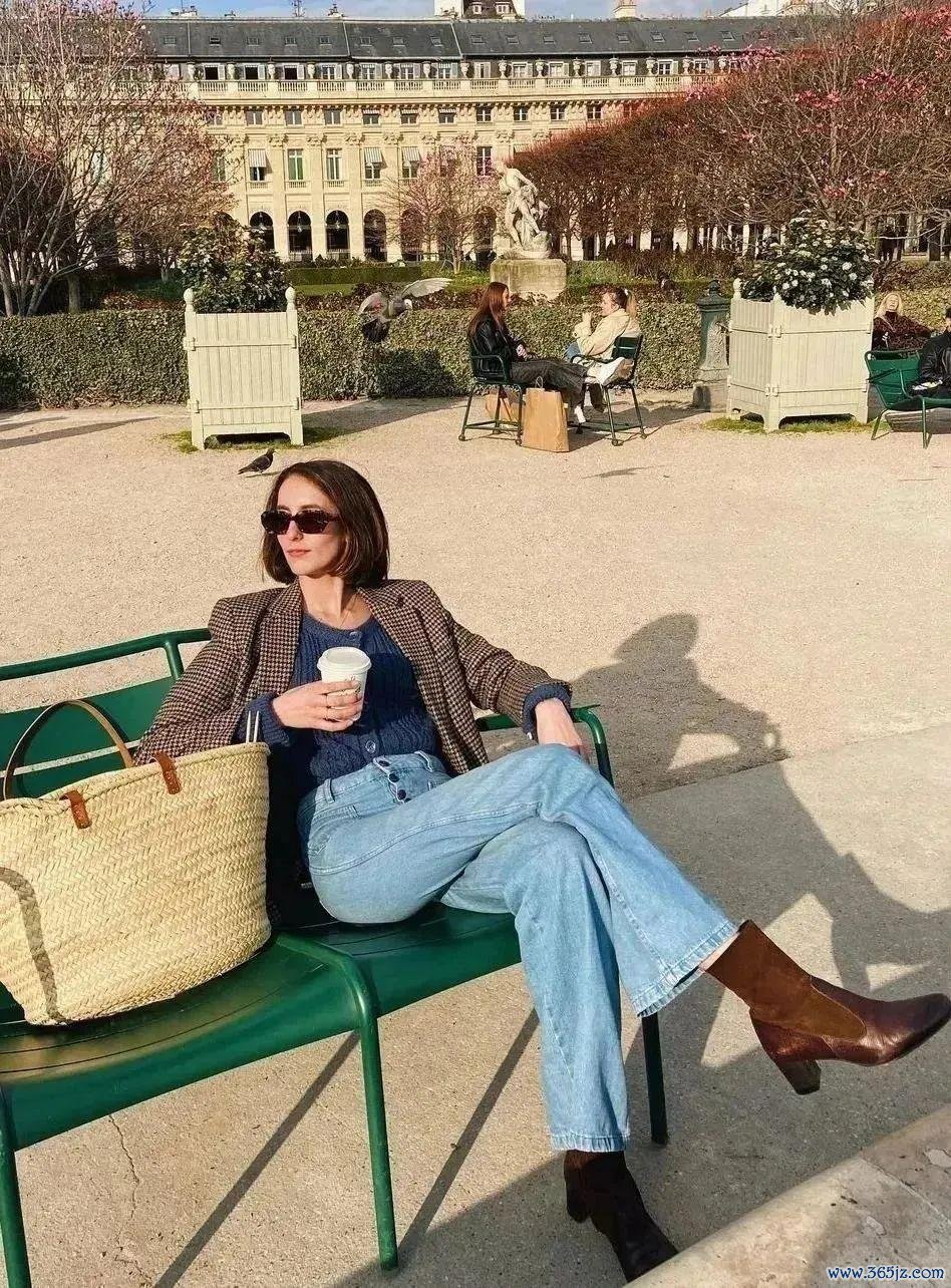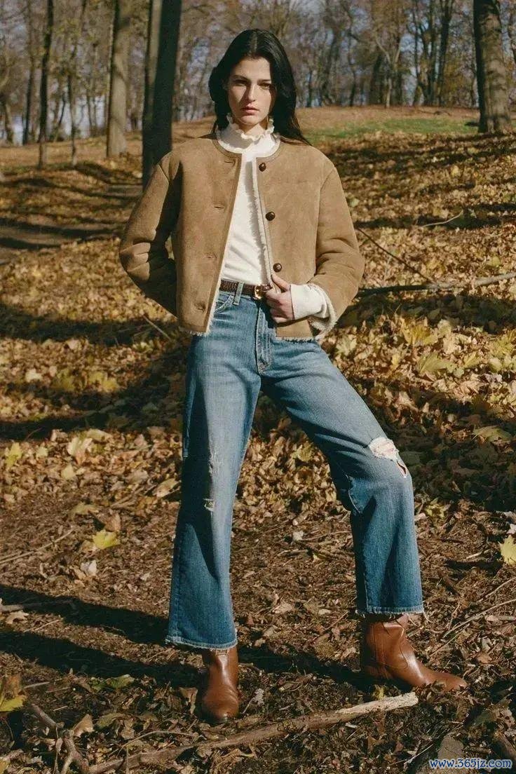 牛仔裤要失业一些,而阔腿西裤则可以用来打造比拟负责的通勤风。