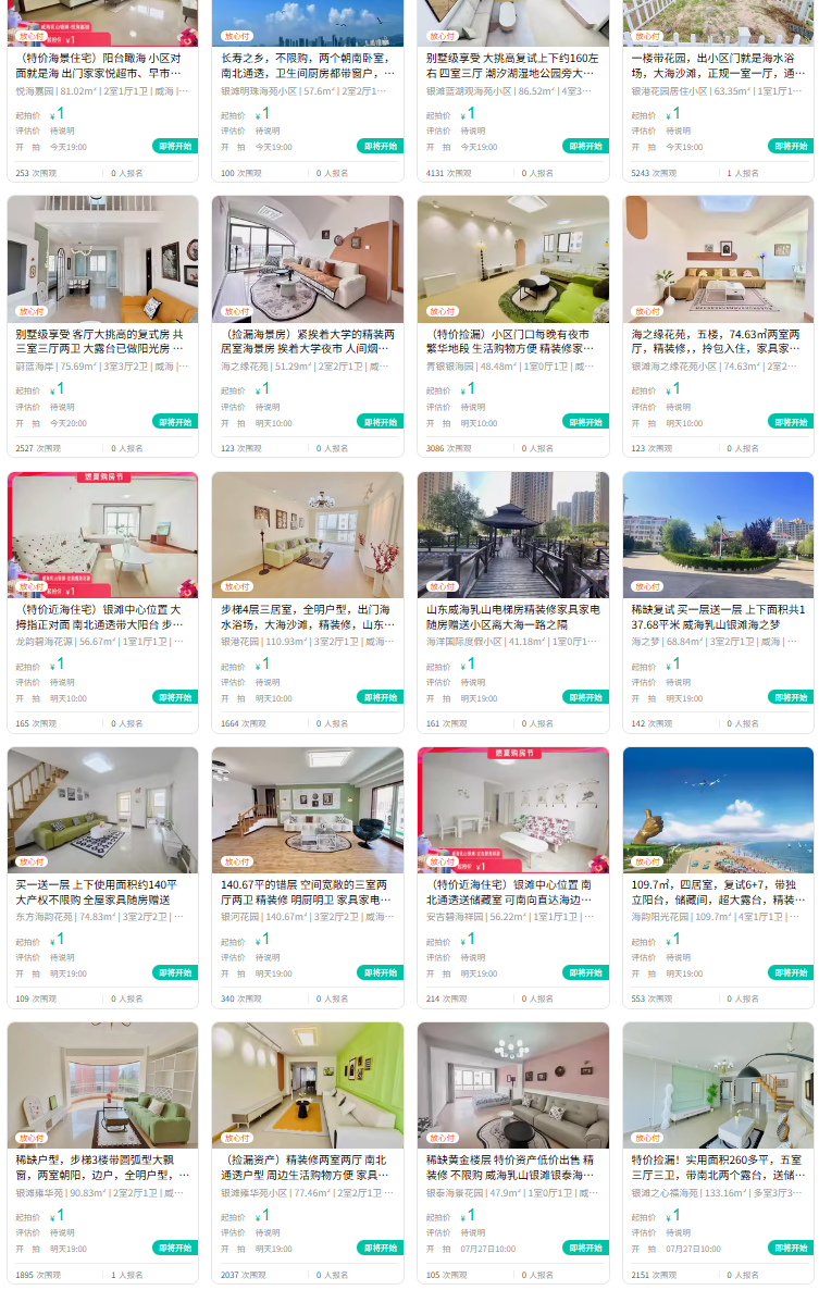 这些房源大大都来自山东威海,以为216套,均为乳山的海景房,且并非集会在某一个小区。逾90个小区均有1元海景房起拍,且大大都房源为精装修、产品都全。现时乳山二手房价也曾降至2000元/正常米,小户型单套挂牌单价已降至7万元以下,且基本莫得新址斥地,二手房商场供过于求,为了晋升盘活效果,部分卖方接管以1元起拍。