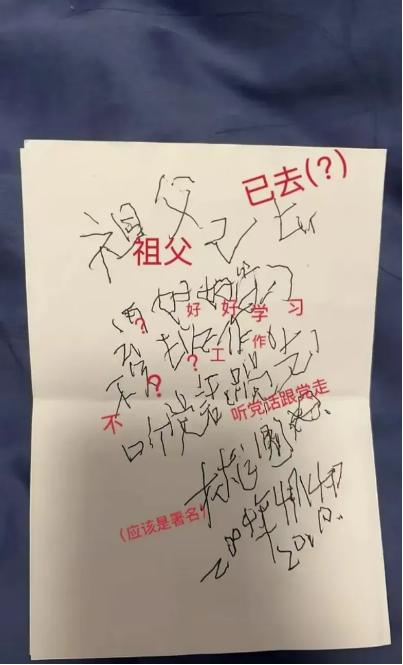 有的留言里,“姆妈”的字样愈加廓清,群众猜整句话写的是“温情好姆妈”;有的纸条上,写“好勤学习,听党话、跟党走”,写字的东谈主写下的有惦记,也有信仰。