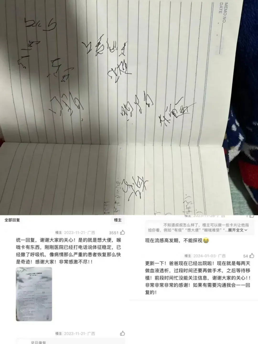 “那时阿谁帖子发出来之后,有许多东谈主维护认,其实是一个字一个字强迫出来的,筹备病东谈主念念抒发的应该是喉咙里有东西。病东谈主还在重症病房,群众皆很着急,因为笔迹的鉴别干系到一条人命。”