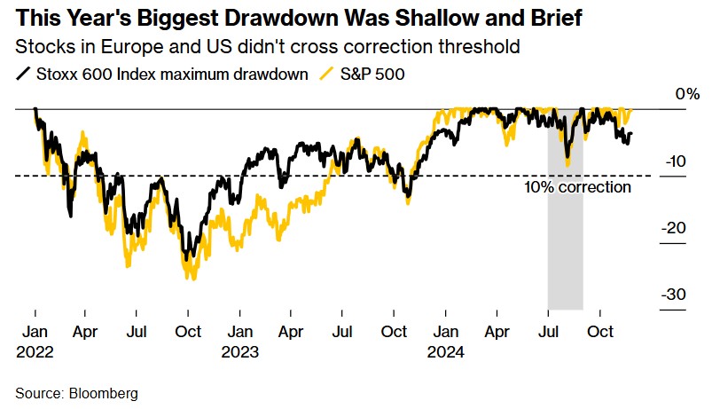 本年的最大跌幅既浅且短——泰西股市未跌破修正门槛点位